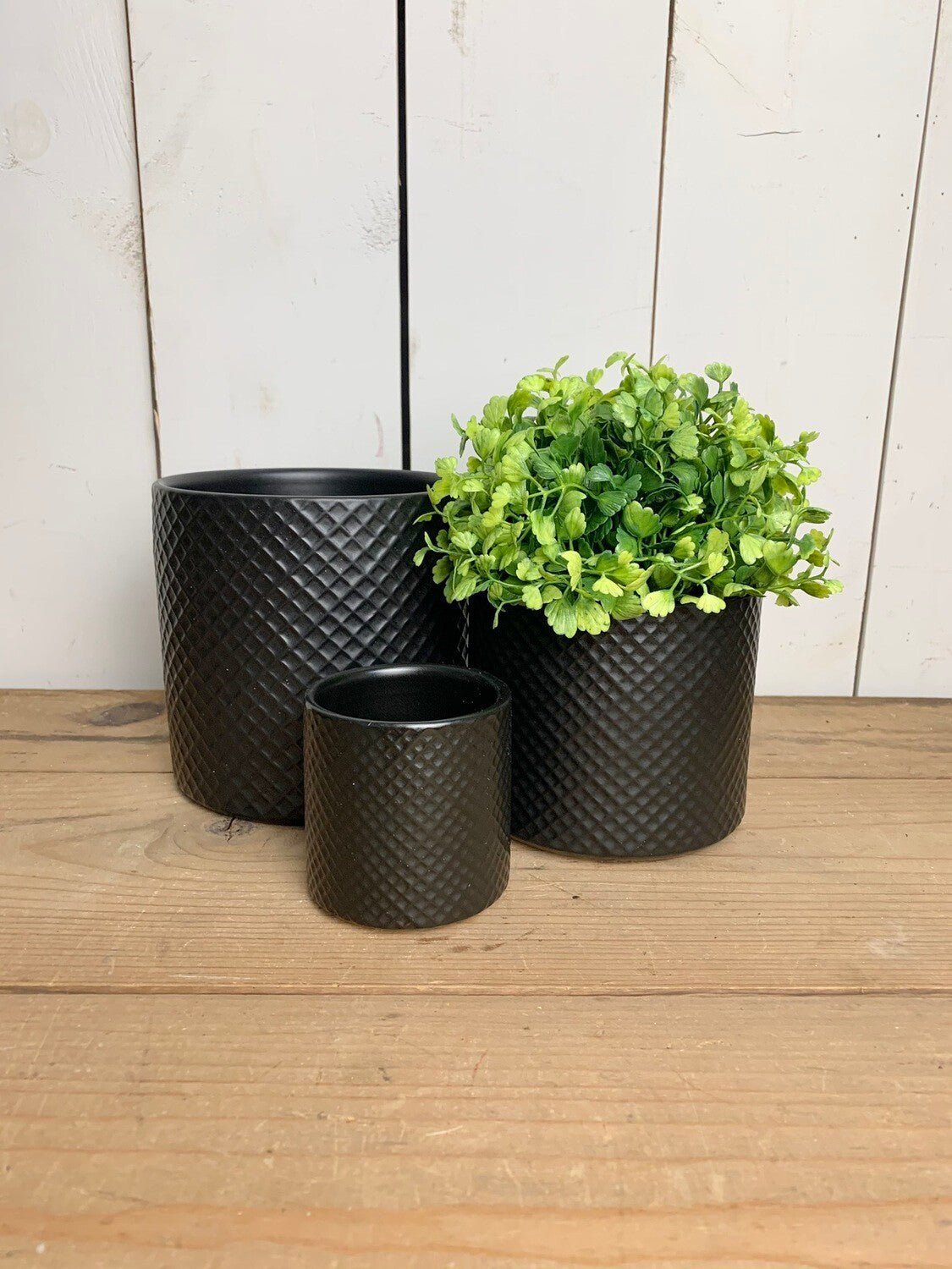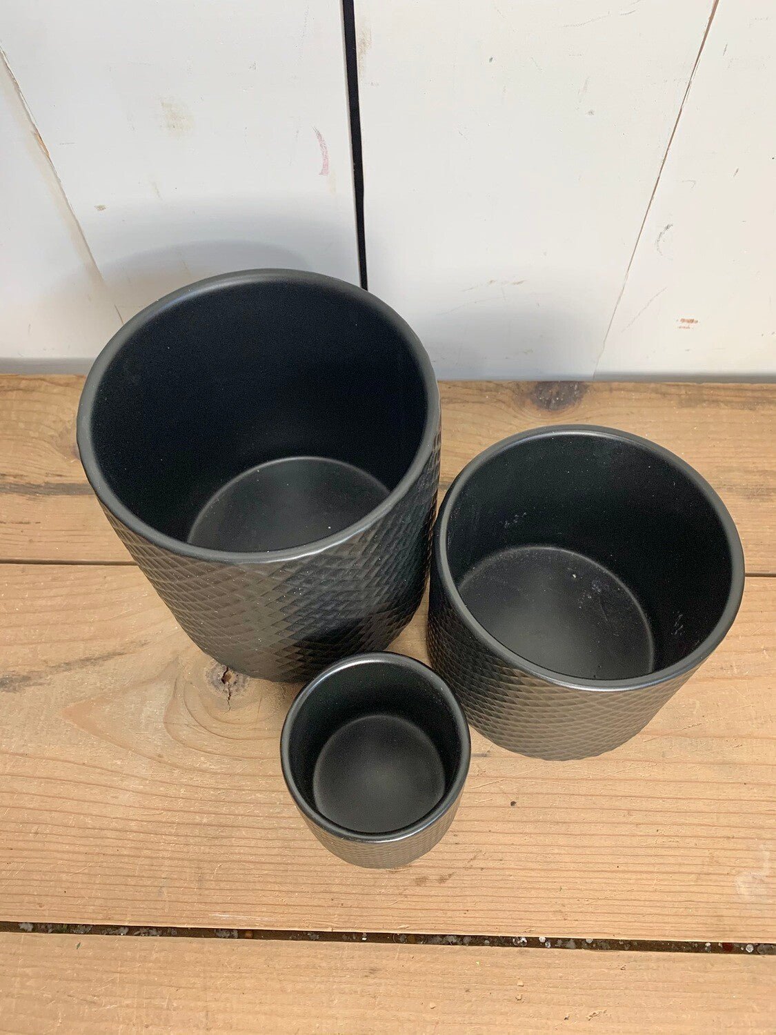 This ceramic collection of pots is sleek and modern with a wonderful patterned exterior.