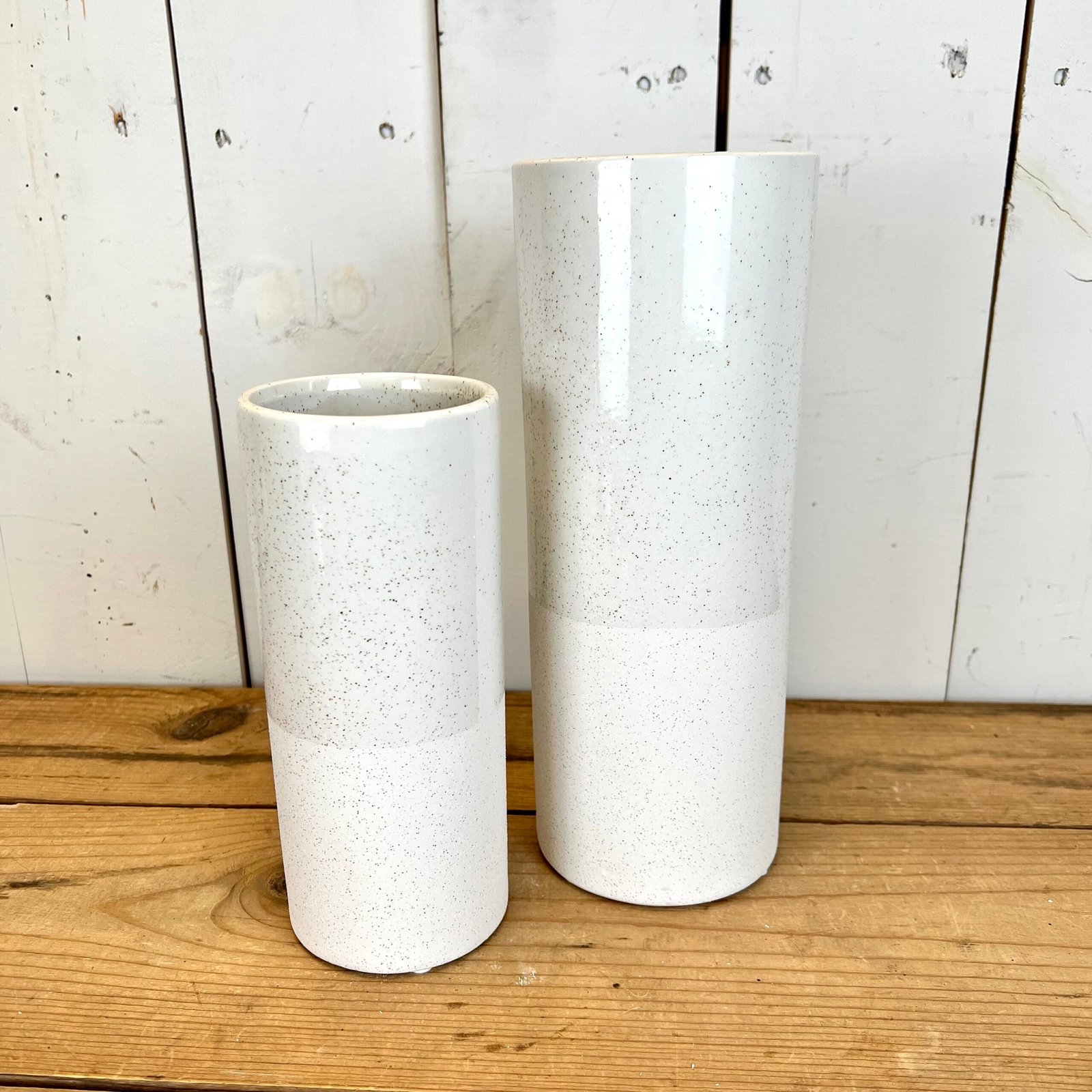 Terracotta, clay, and even concrete have unique properties of being sustainable, safe, durable and versatile enough for every style! The speckled pattern and gloss/matte finish of these white containers are both modern and classic.