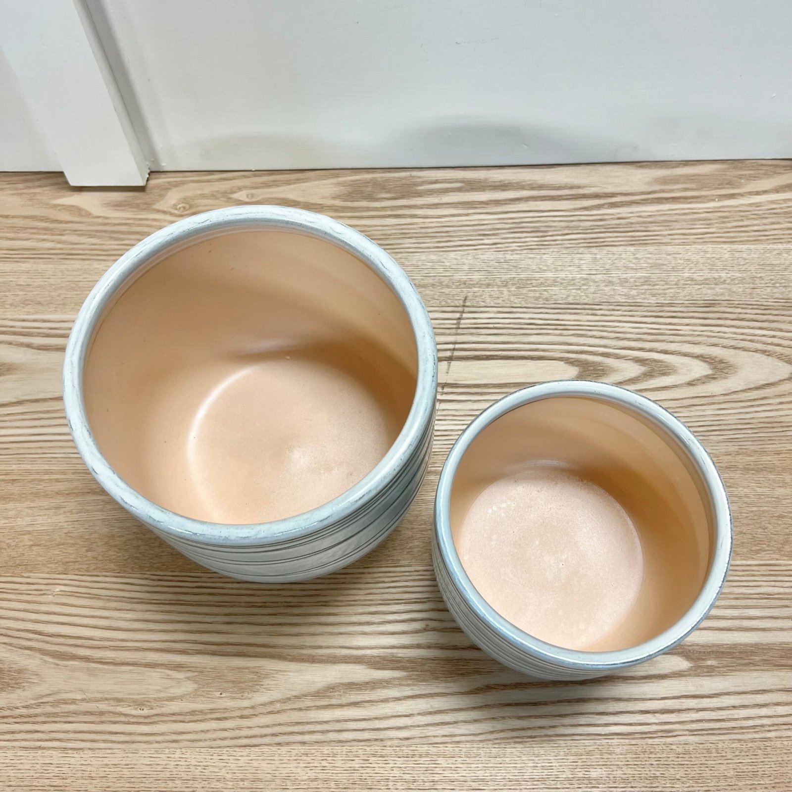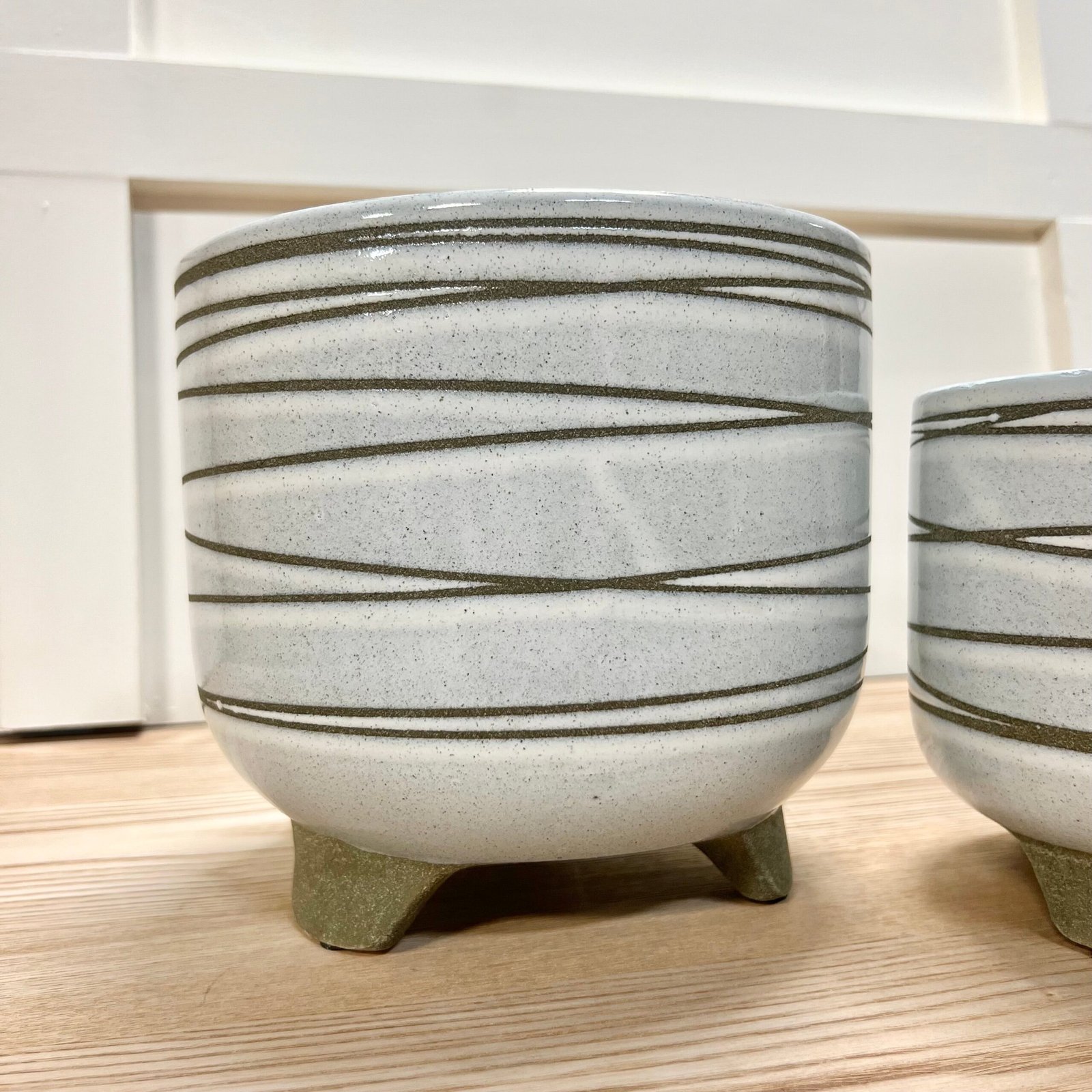 Be the first to review “Sage Green Striped Footed Planters – Set of 2”